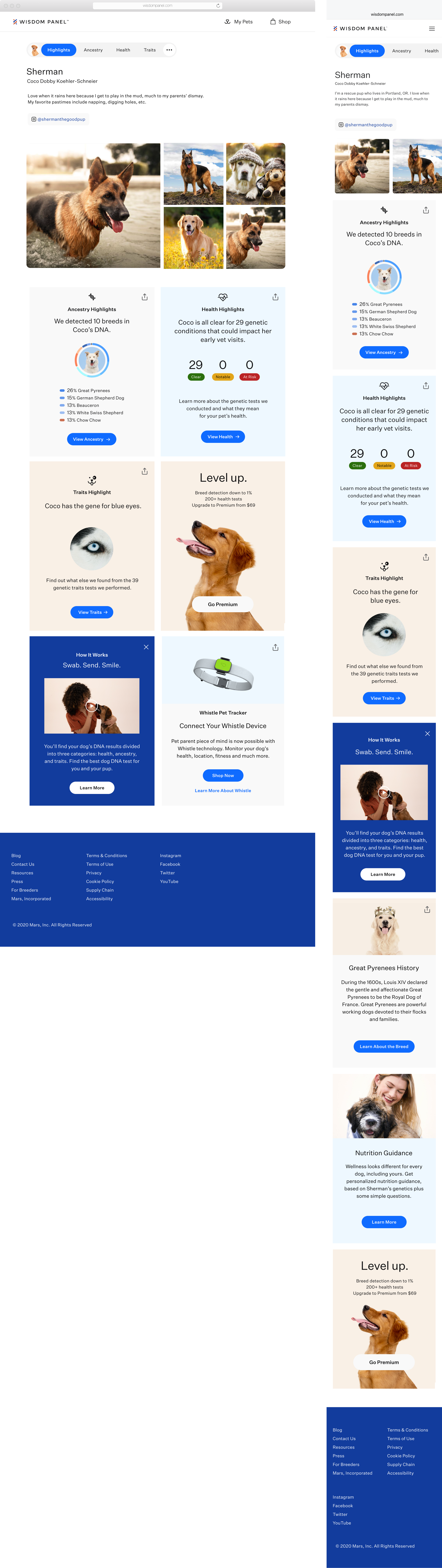 Stakeholders and product teams saw an opportunity for the Wisdom Panel product to enter the social media market. I was tasked with building Pet Profiles for pet owners looking to share their pet's DNA results across the globe.